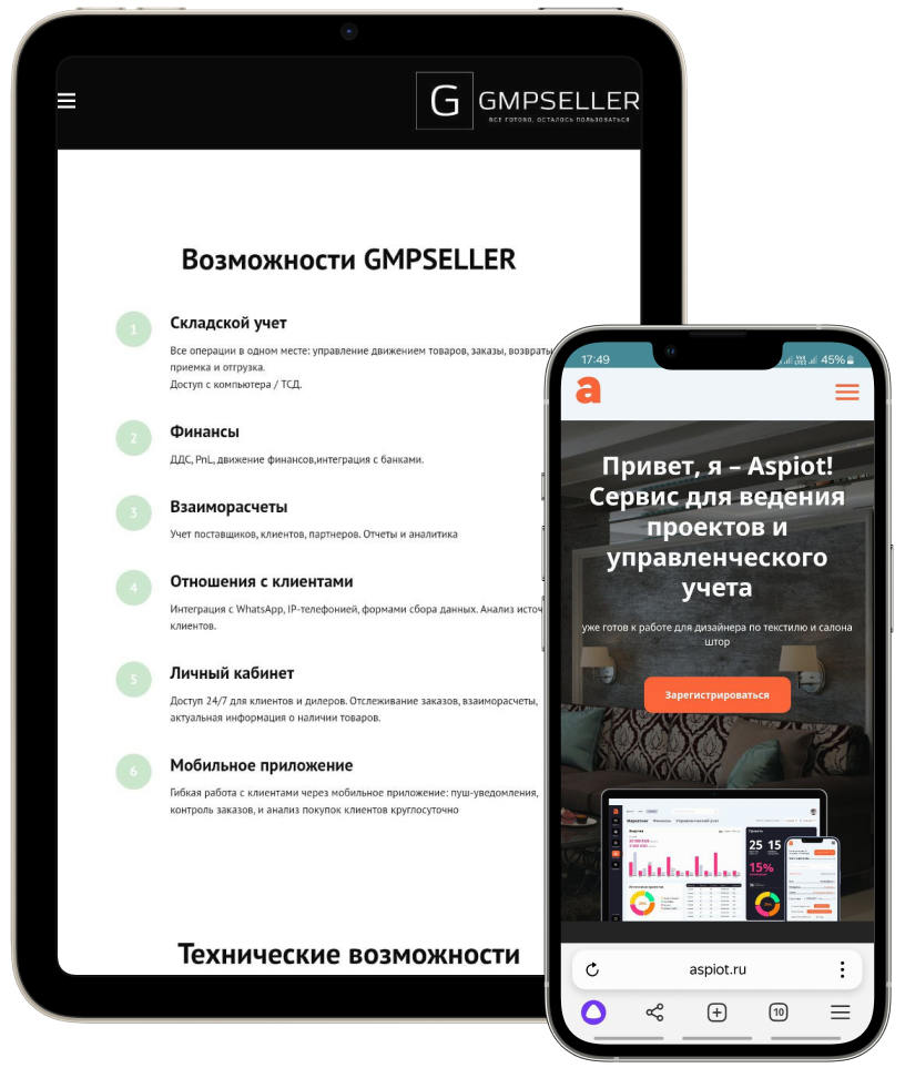 Мобильные приложения Aspiot и GMPSeller. Весь бизнес в кармане. Ничего не теряется.